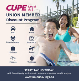 Our local has teamed up with Unionsavings.ca to offer our members great savings on Travel, Entertainment, Home and Auto. Register at unionsavings.ca to take advantage of these amazing offers.